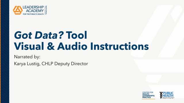 *This video was recorded in 2021 prior to our name change from the Center for Health Leadership and Practice (CHLP) to the PHI Center for Health Leadership & Impact (CHLI). It also references the Got Data? Tool from the 2021 cohort year, which had different due dates from this year. While logos and submission dates are not up to date in the video, the content and instructions about how to complete this tool are accurate.