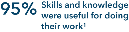 The individuals we work with overwhelmingly report that program participation contributes to their growth as a leader, their team’s development, and the progress or success of their team’s project.